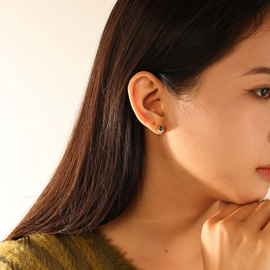 Vintage-Style Emerald Green And Clear Crystal Studs