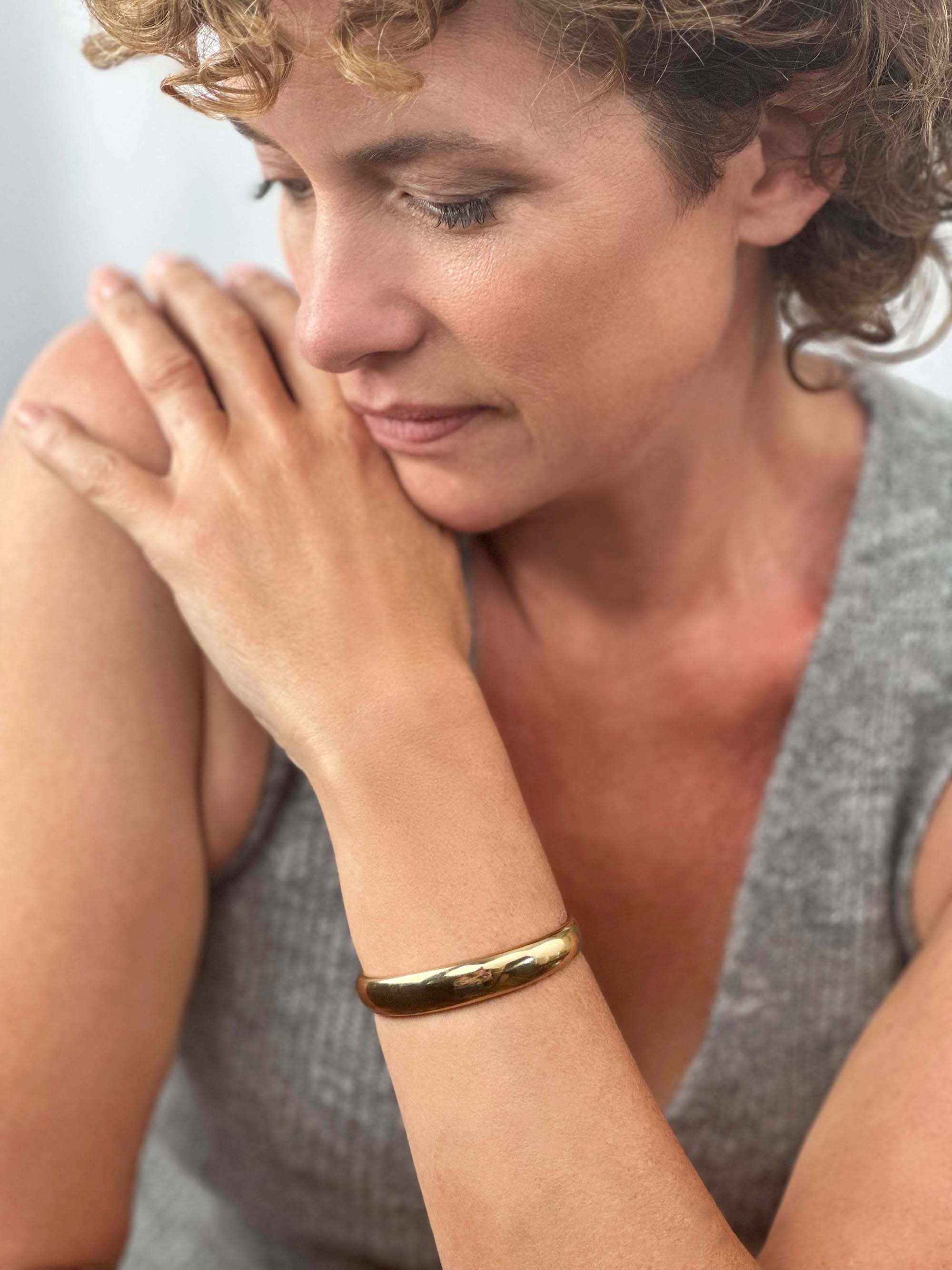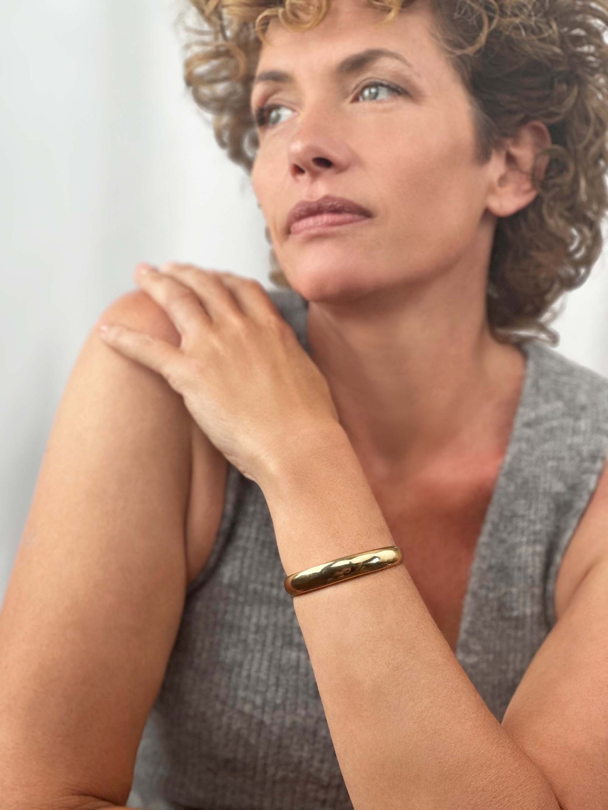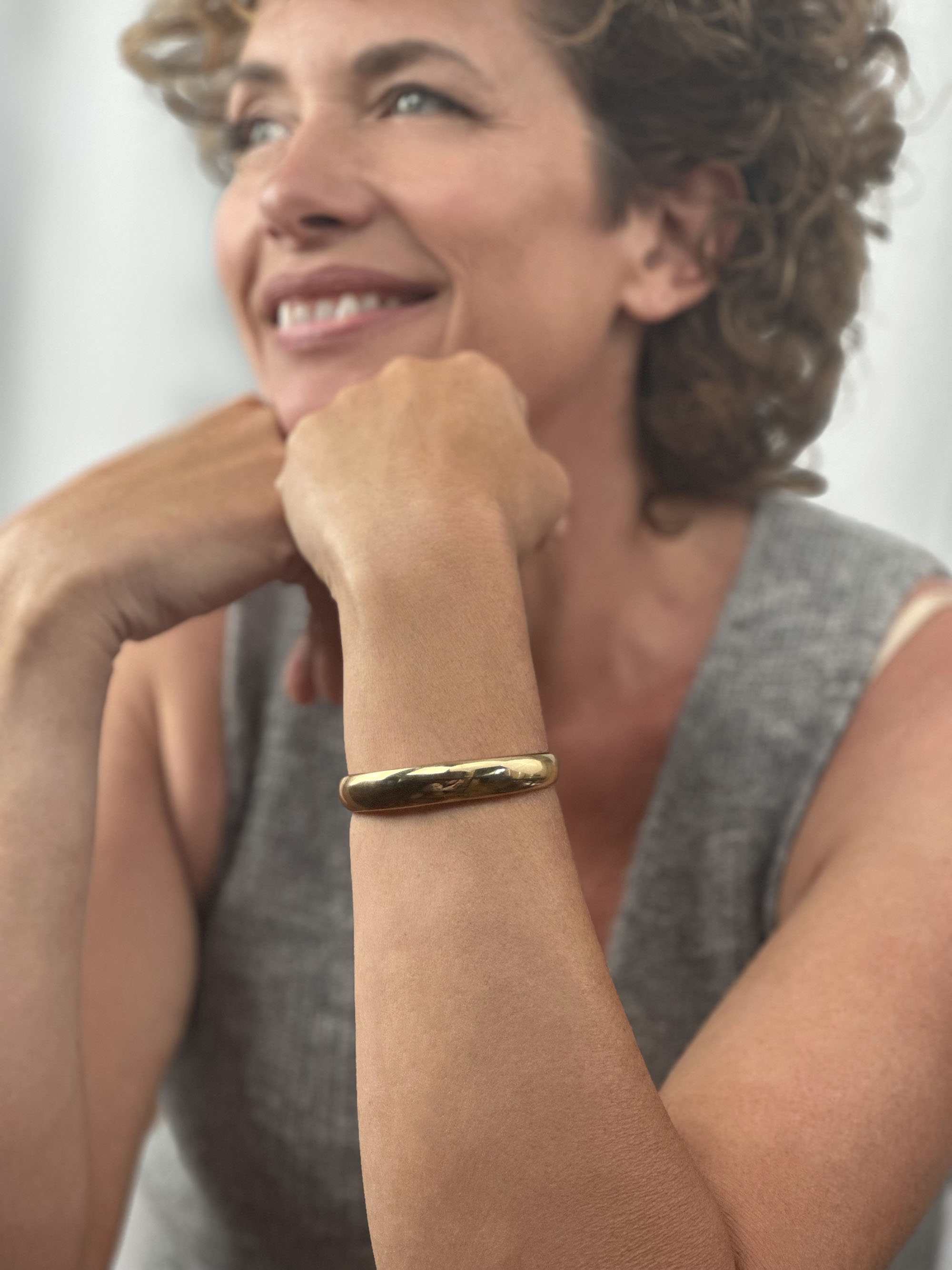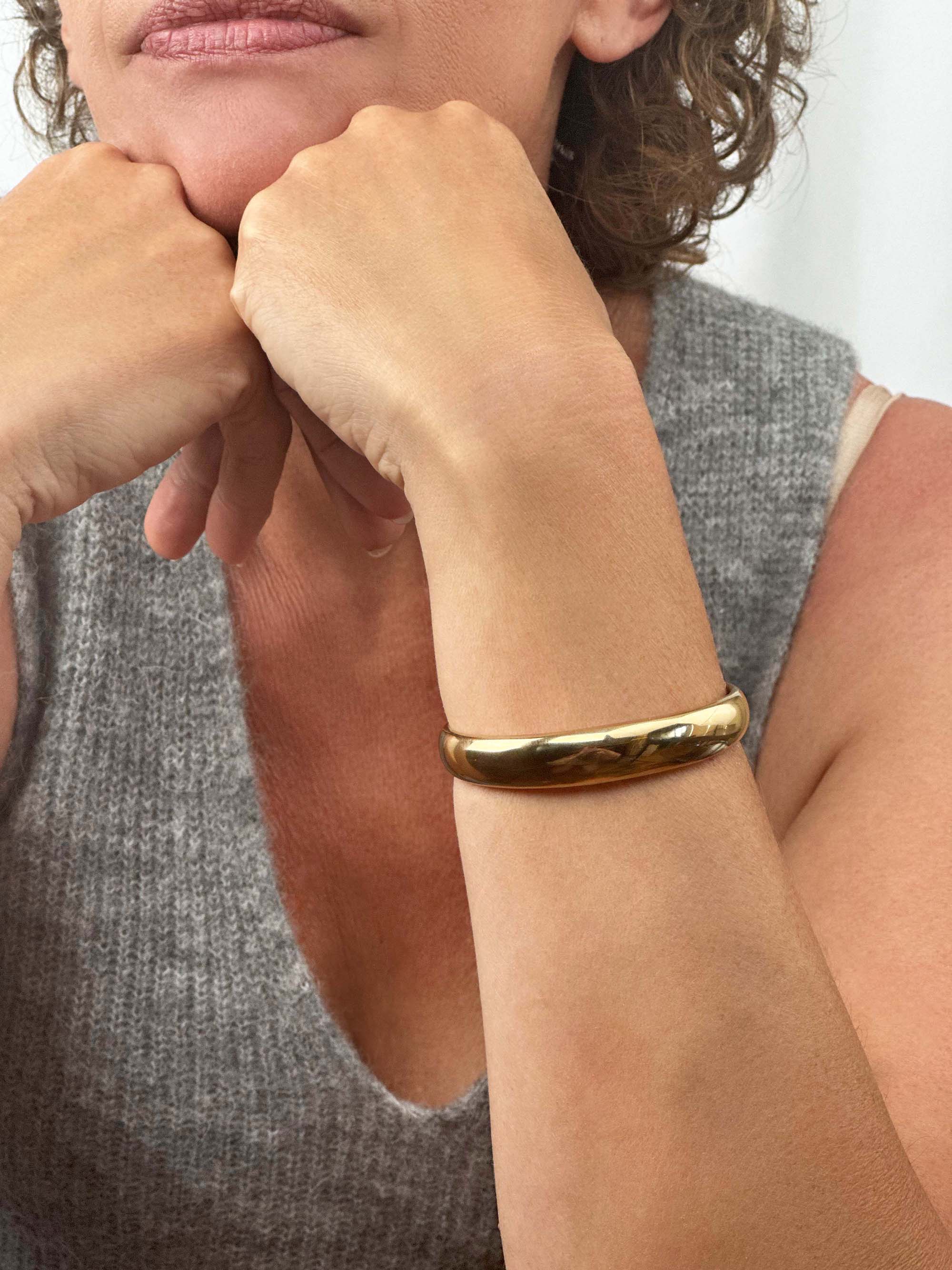 All the shine, with extra presence—the Bold Sleek Cuff takes the clean, minimalist shape you love and gives it a chunky, sculptural upgrade. Smooth, high-shine, and easy to wear, it makes a confident statement while keeping things effortlessly chic.