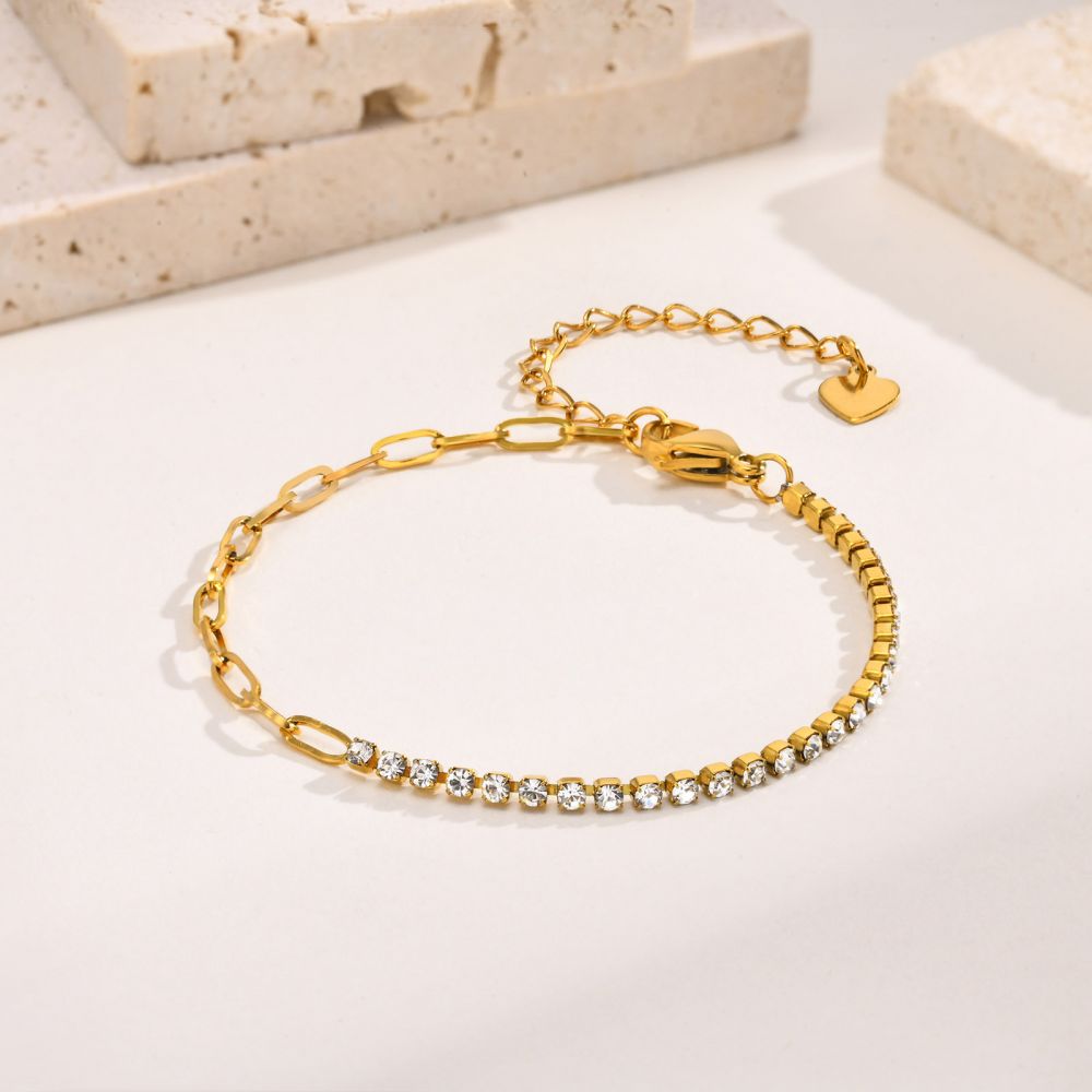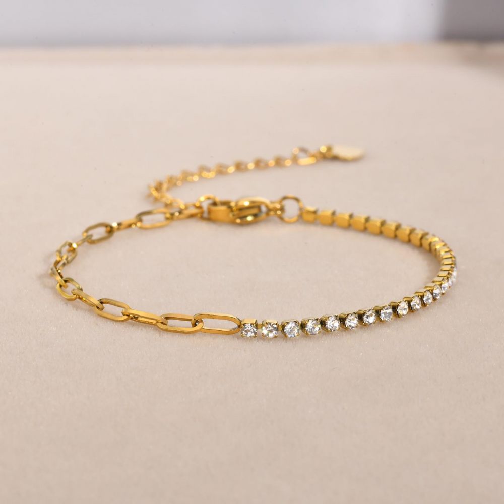 Materials: 18k gold plate, SGS-certified 316L stainless steel, cubic zirconia.