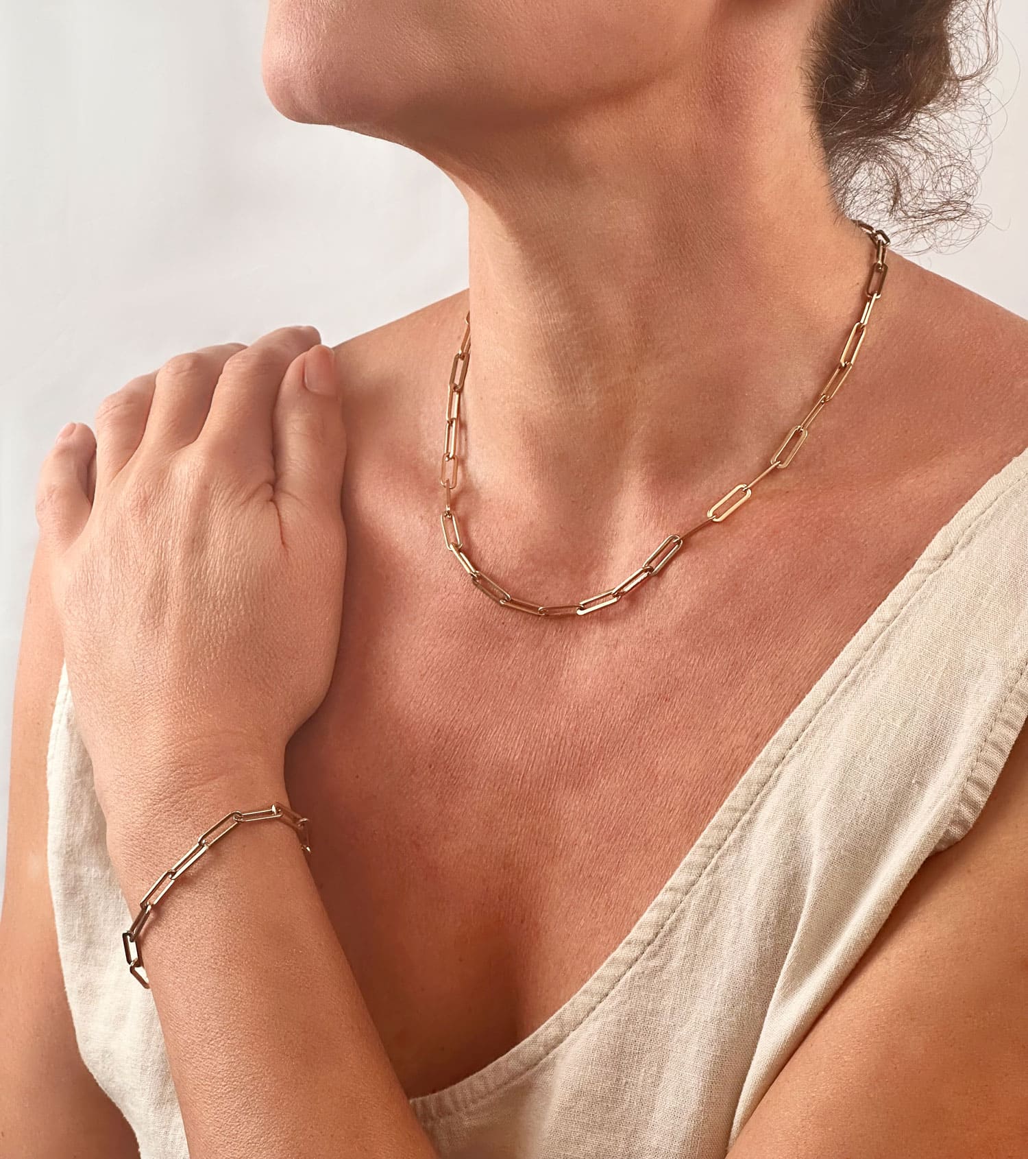 At the core is premium 316L stainless steel—hypoallergenic, made from recycled materials, and resistant to rust, scratches and oxidation. It has the look and feel of solid gold, but it’s more sustainable—and without the price tag.