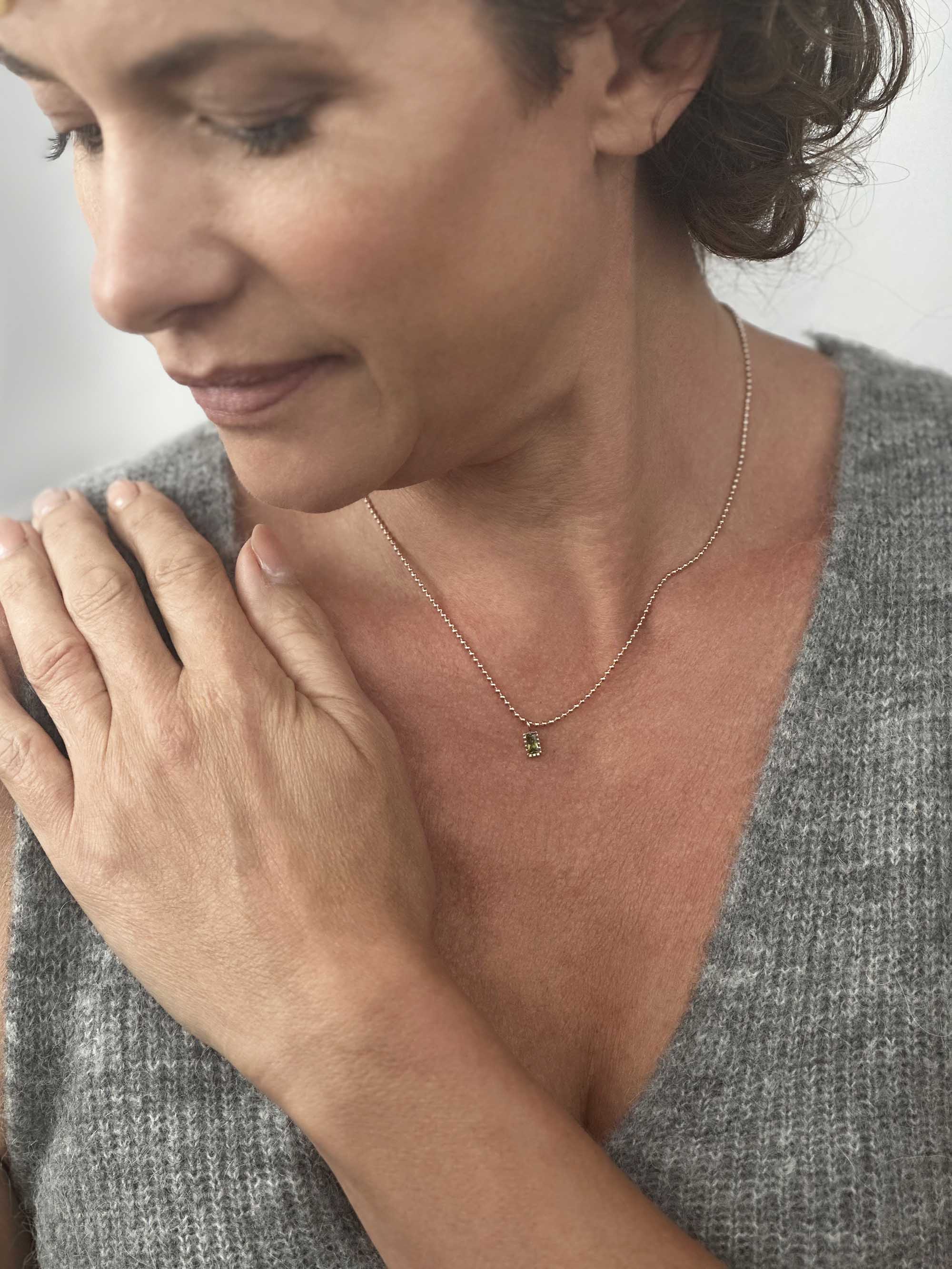 Peridot CZ Bobble Necklace (Tarnish-Free)