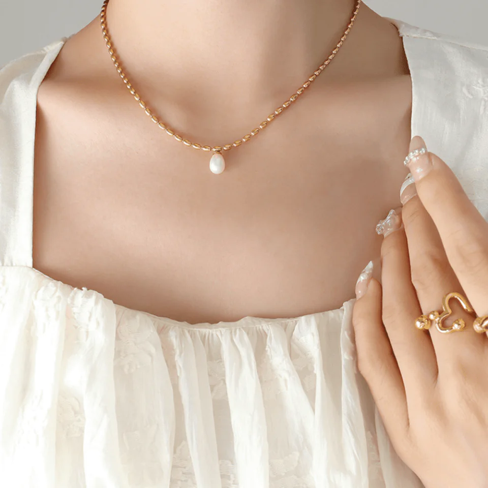 Materials: 18k gold plate, 304L stainless steel, freshwater pearl
