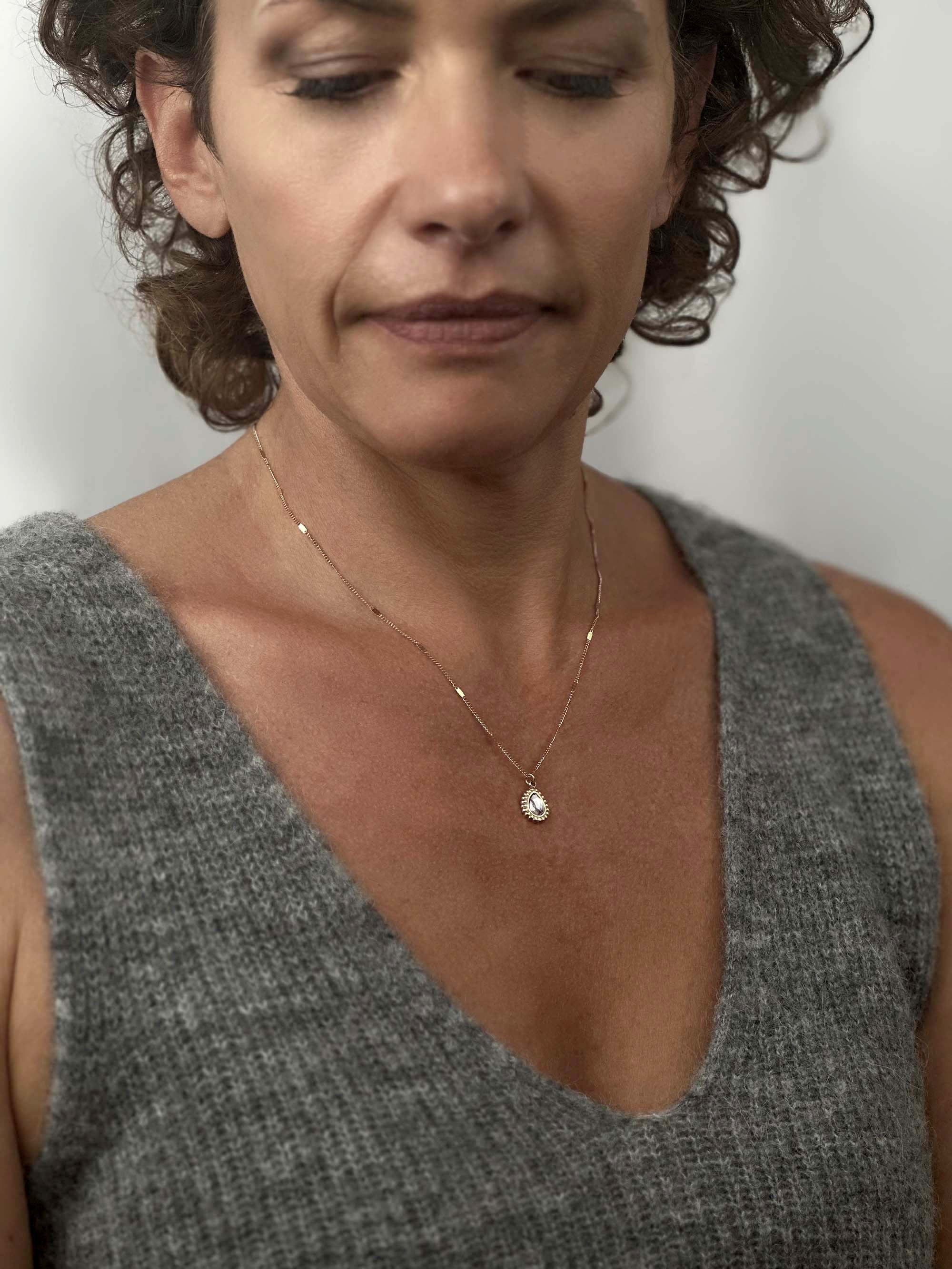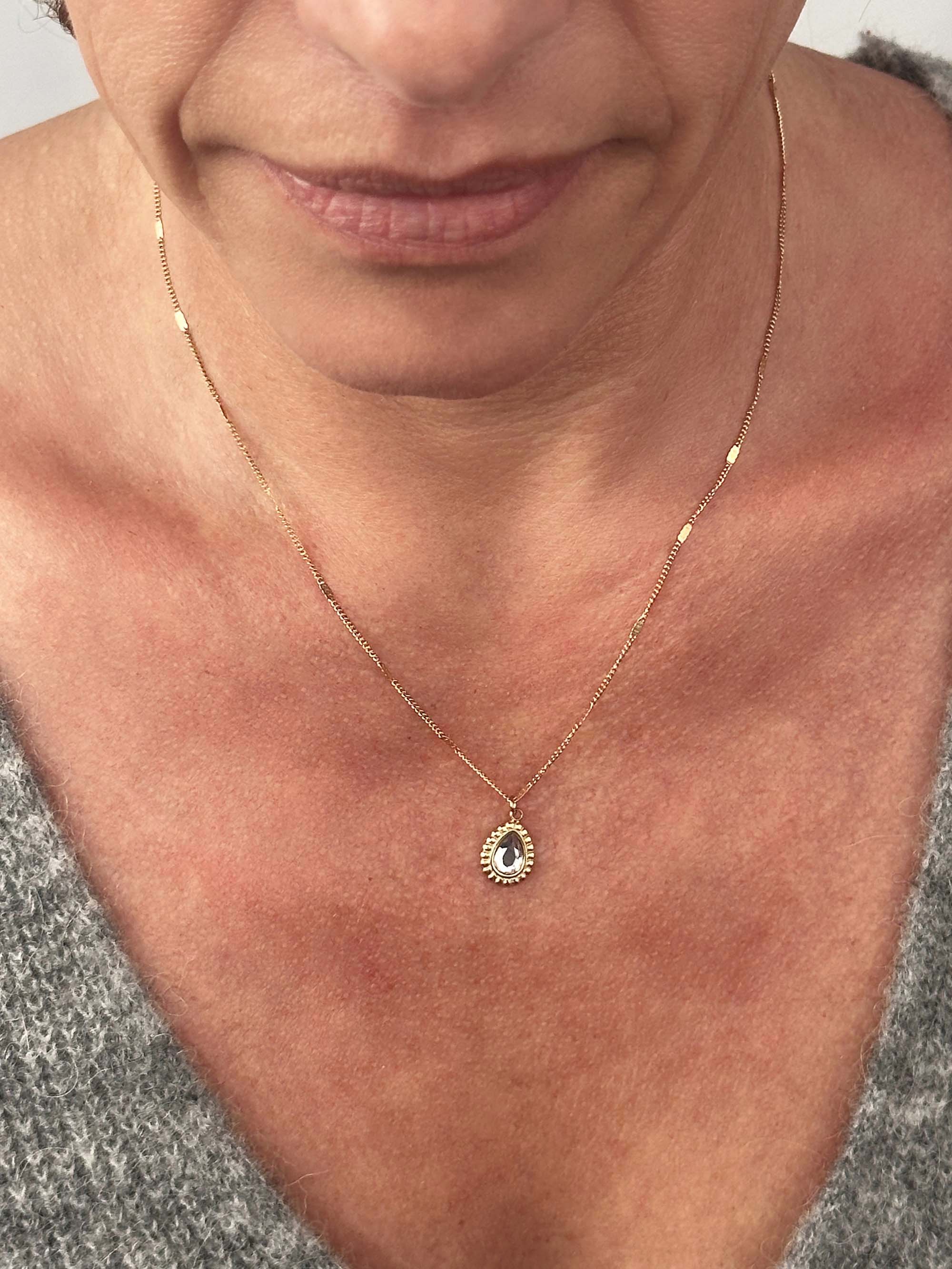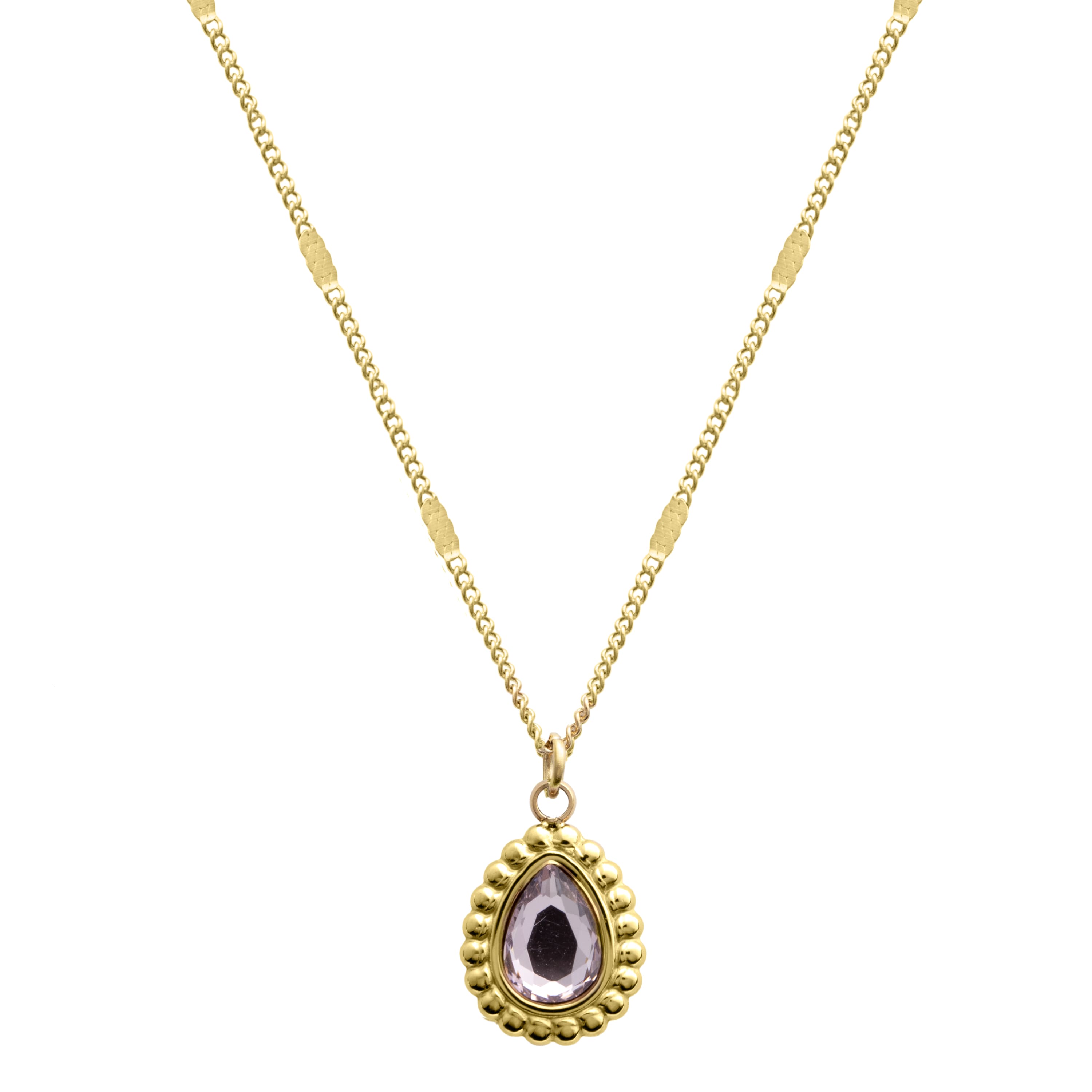 With its rose teardrop stone and detailed gold setting, the rose Bloom necklace feels like a vintage treasure. Delicate yet eye-catching, it adds a romantic flourish to your look—perfect for special occasions or simply brightening your everyday. A little floral, a little regal, and entirely lovely. Also available in lilac, sky blue and London blue.