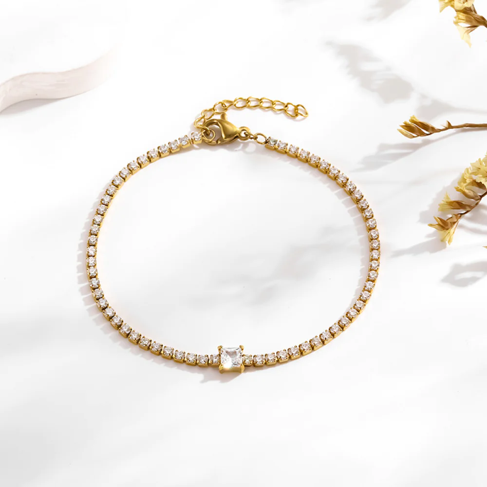 Materials: 18k gold plate, SGS-certified 316L stainless steel, cubic zirconia.