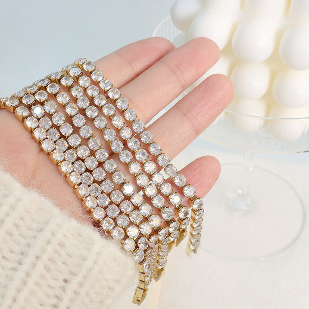 Materials: 18k gold plate, SGS-certified 316L stainless steel, cubic zirconia.