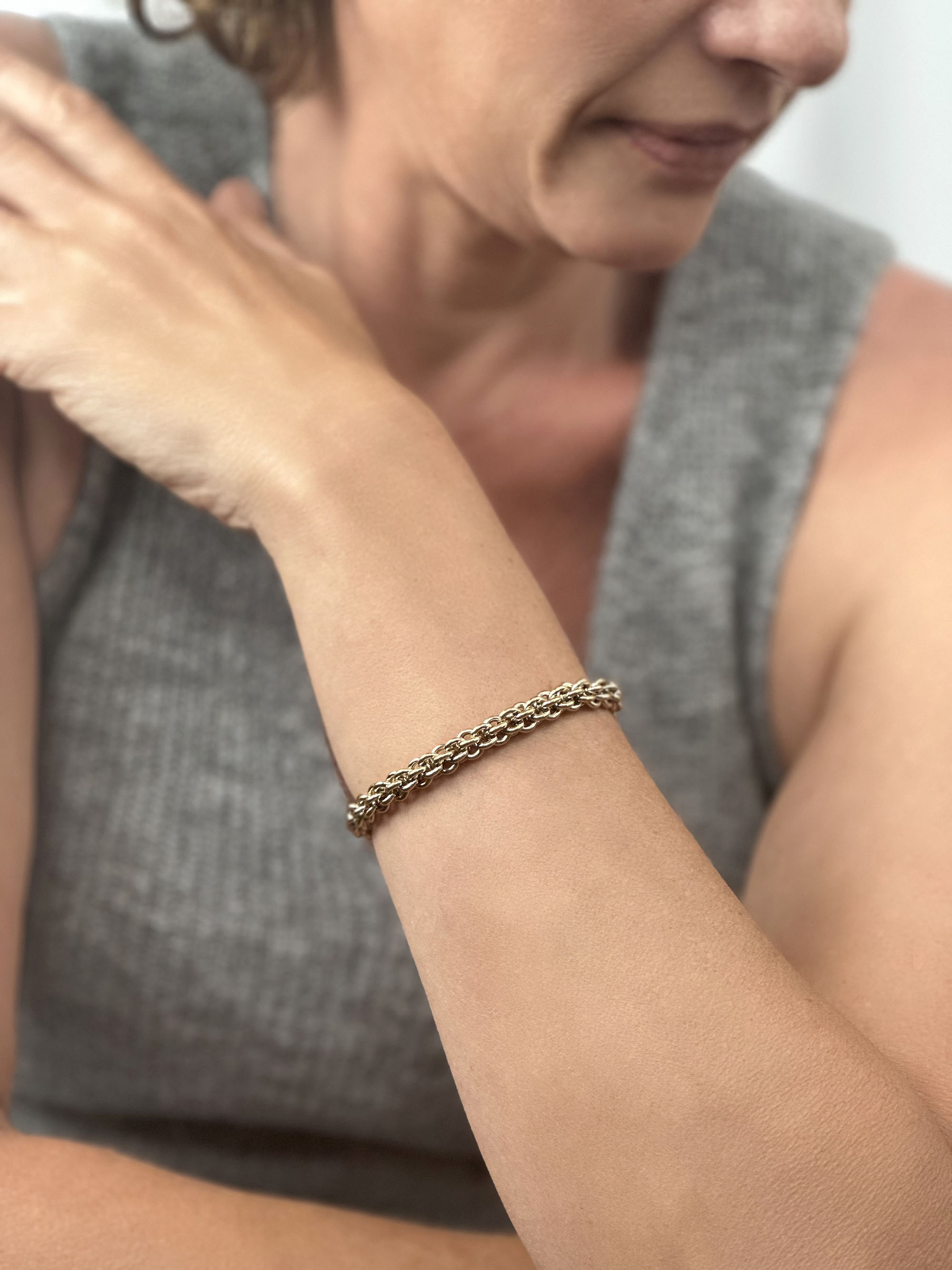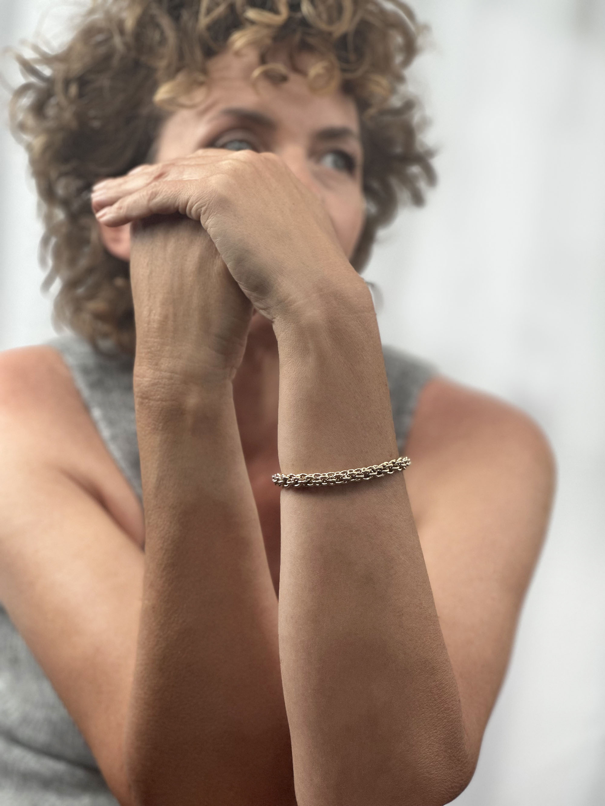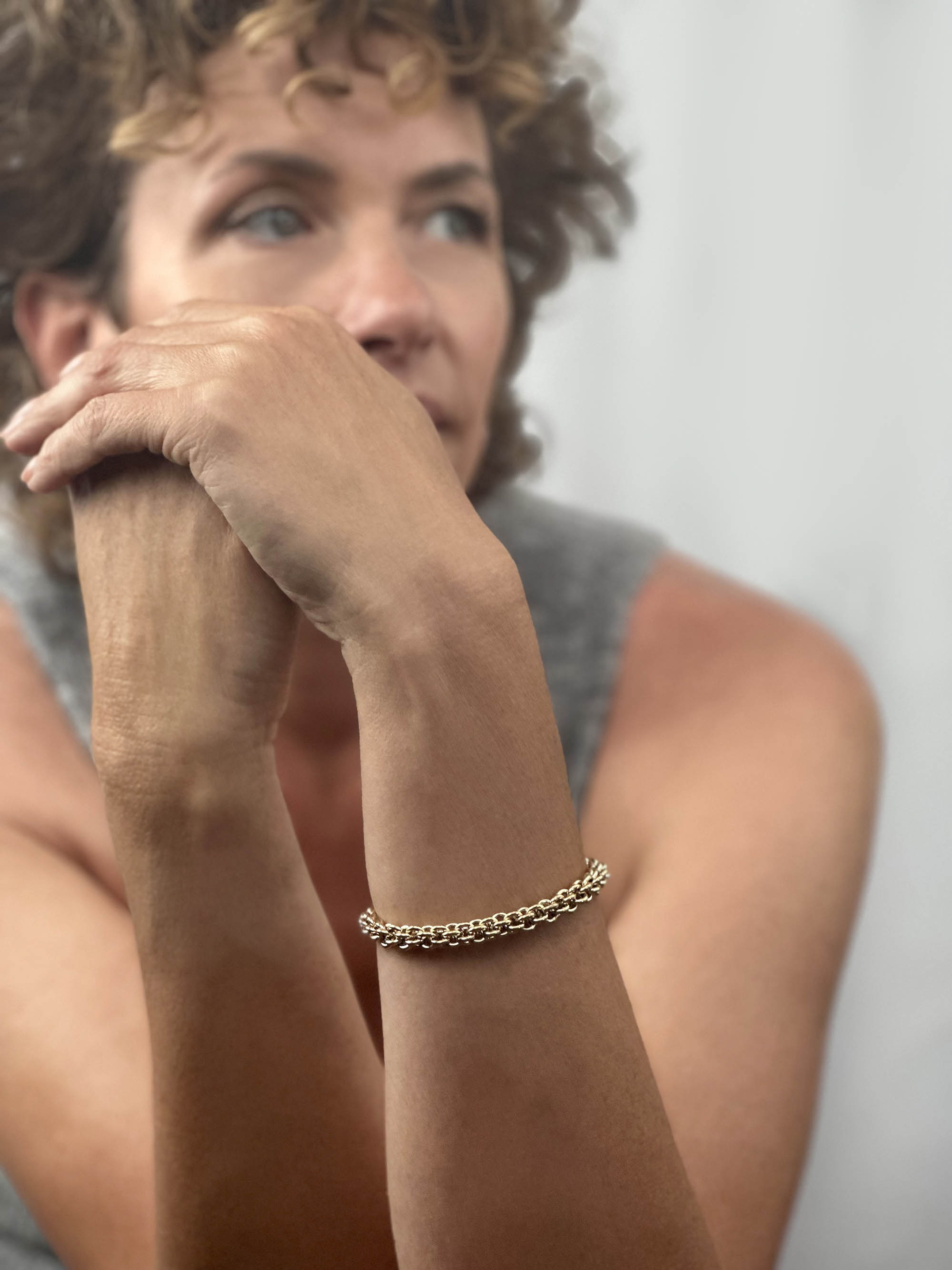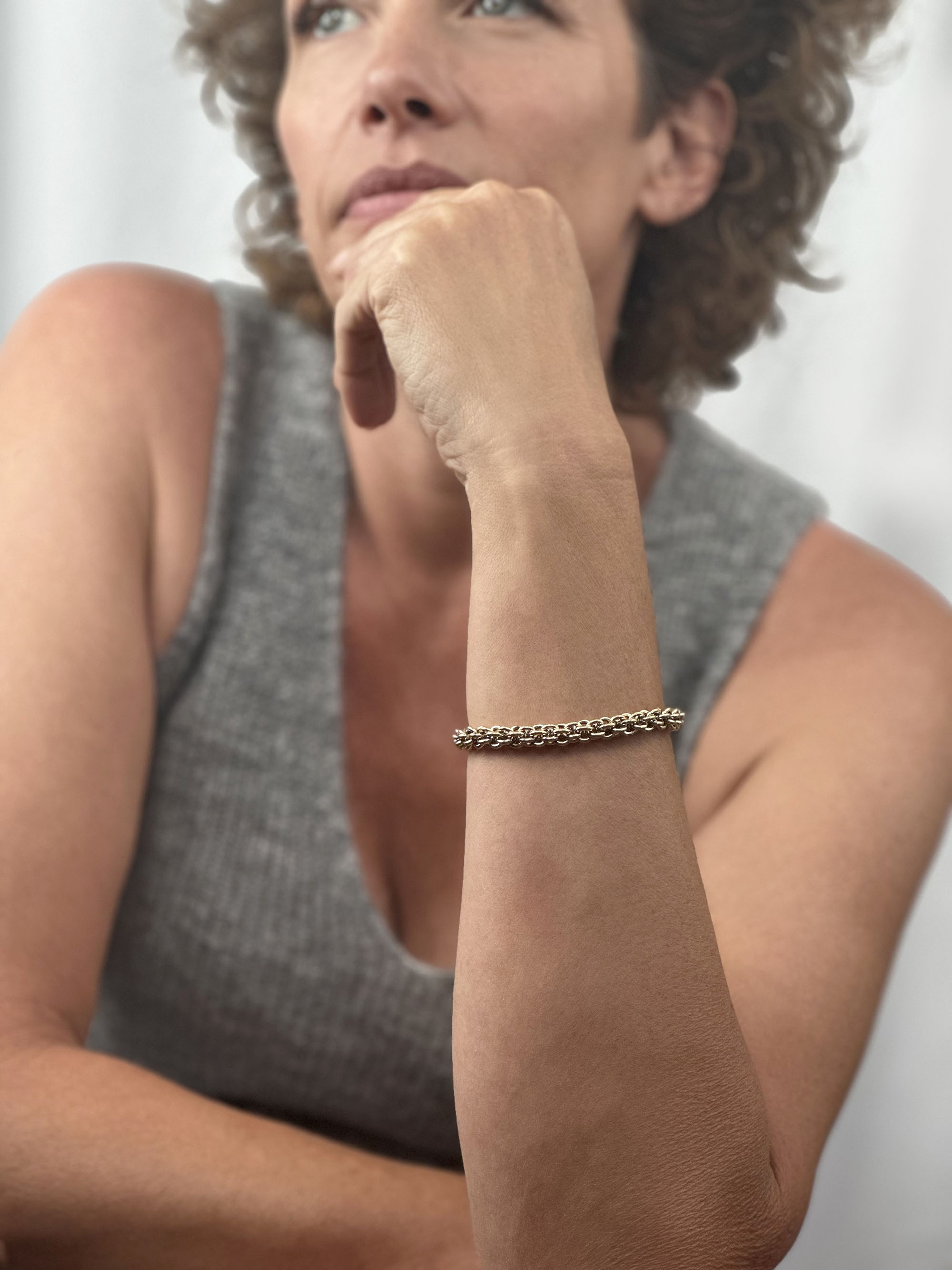 At the core is premium 316L stainless steel—hypoallergenic, made from recycled materials, and resistant to rust, scratches and oxidation. It has the look and feel of solid gold, but it’s more sustainable—and without the price tag.