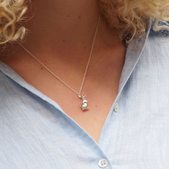 A familiar white rabbit looks frantically over his shoulder, nervous he is running out of time, in this Limited Edition pendant necklace. Handmade in sterling silver.