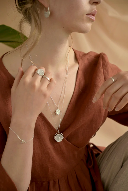 Ethical jewellery handmade in London using eco-friendly methods, recycled metal & plastic-free packaging. Perfect for those who are eco-conscious and live a sustainable environmentally-aware lifestyle. This designer has sustainability at her heart. Her mission has always been to create the most transparent jewellery brand, and she’s set the bar high. Each piece of jewellery is handmade with traceable silver and gold.