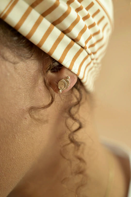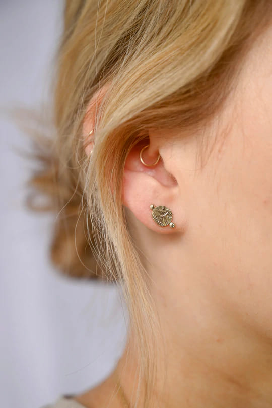 Tesoro Coin Stud Earrings is a detailed and textured piece with meaning. Tesoro is the Spanish word for treasure, the collection is based on old Spanish doubloons, the design is inspired by a replica of these coins which are regularly depicted as pirate treasure, a little fun twist on the history of gold as treasure, its worth and its beauty.