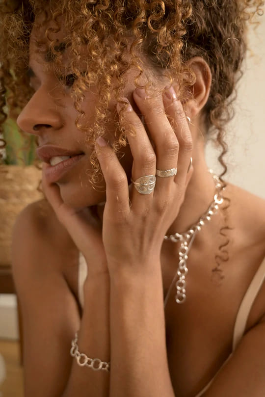 Ethical jewellery handmade in London using eco-friendly methods, recycled metal & plastic-free packaging. Perfect for those who are eco-conscious and live a sustainable environmentally-aware lifestyle. This designer has sustainability at her heart. Her mission has always been to create the most transparent jewellery brand, and she’s set the bar high. Each piece of jewellery is handmade with traceable silver and gold.
