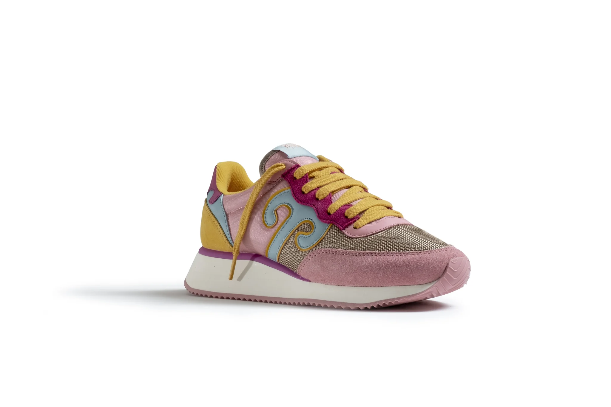 Burnished Lilac, Granita and Honey Gold suede. Burnished Lilac nylon and Island Fossil nylon mesh. Slate Ruyi logo. Honey Gold laces.